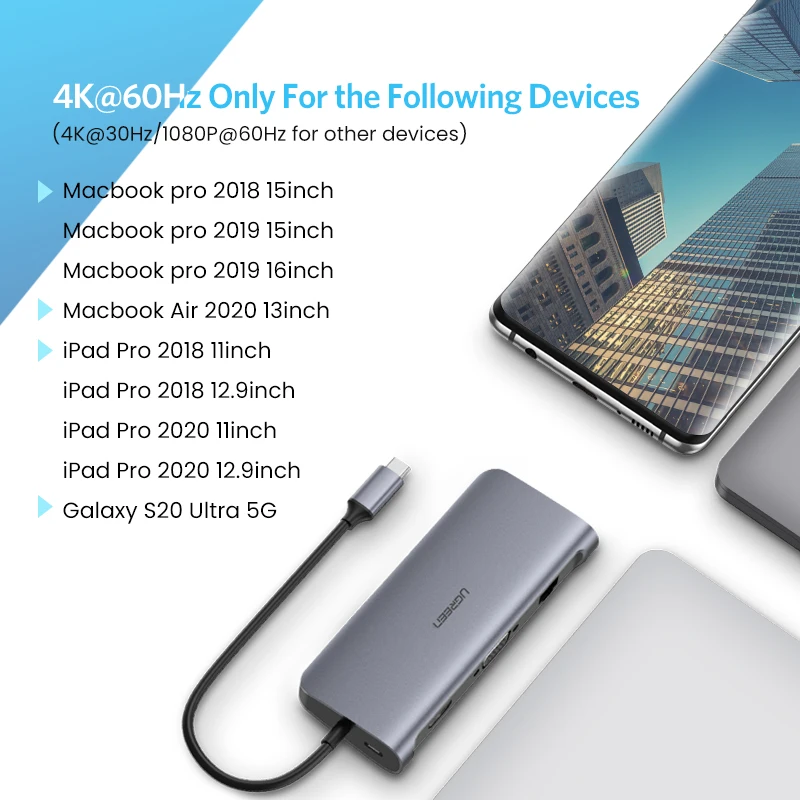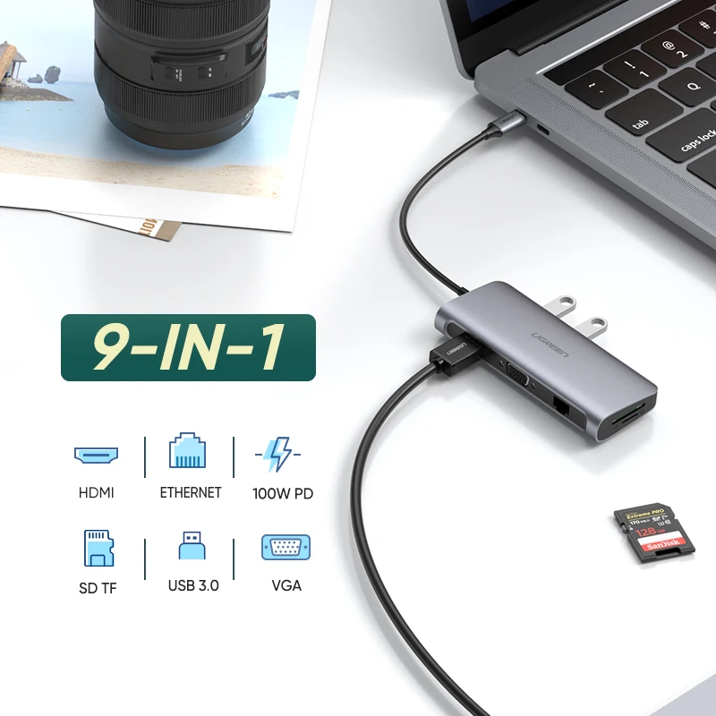UGREEN USB C HUB 4K 60Hz 9-in-1 USB Type C to USB 3.0 HDMI VGA 100W PD Dock Splitter HUB for MacBook/Pro/Air iPad Pro USB C HUB